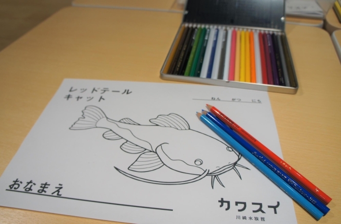 カワスイ水族館の生き物にちなんだイラストも置いてあるので、自由に色をぬってお土産に持って帰るのもいいですね。